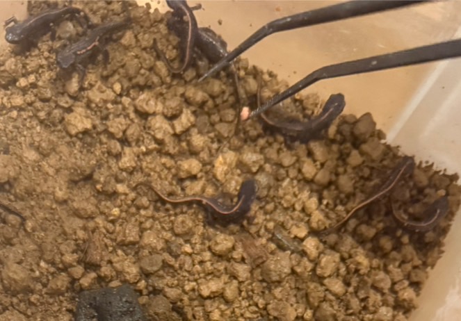 イモリ幼体は、動くものしか餌と認識できない時期があります。