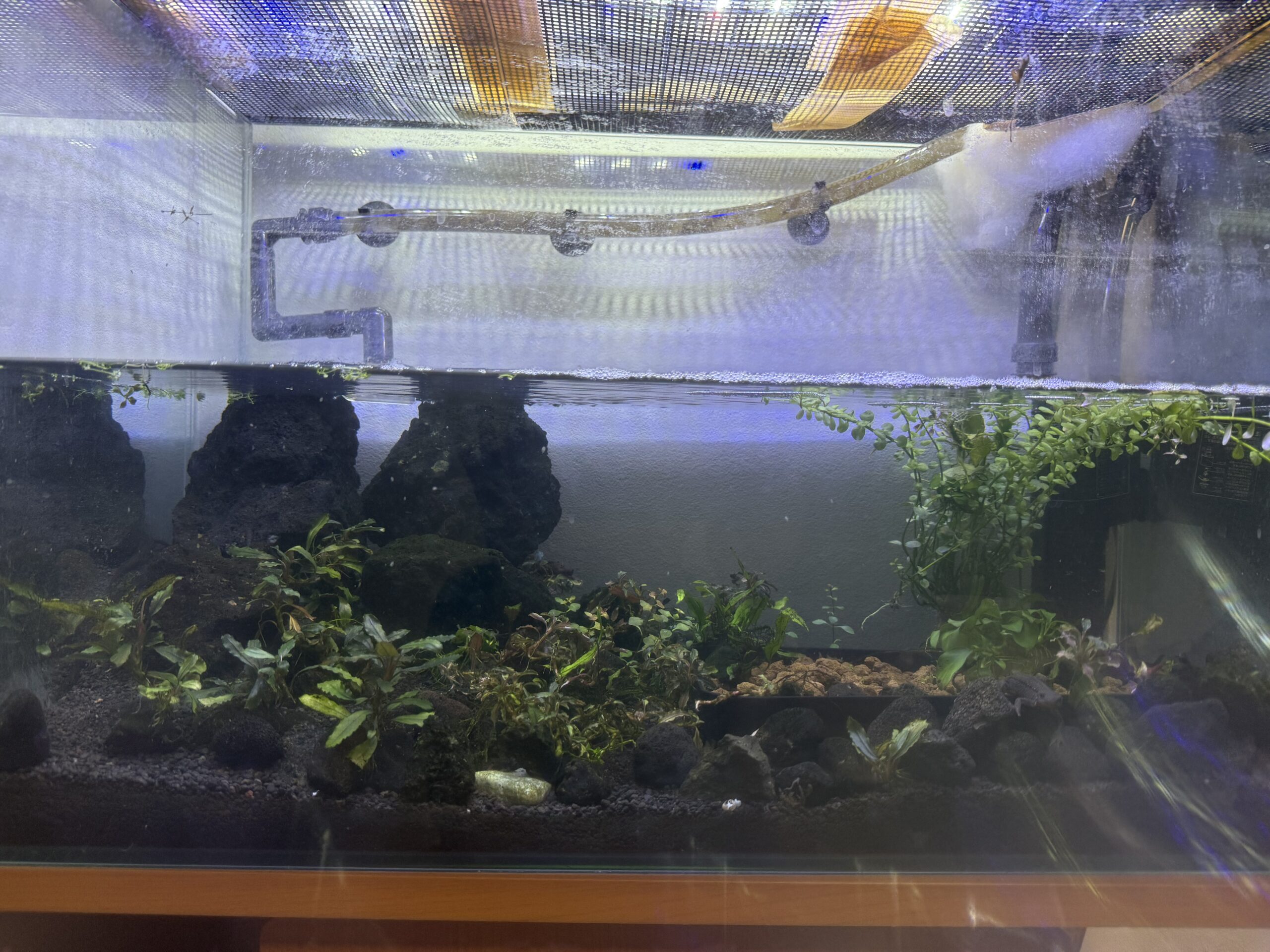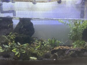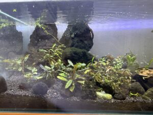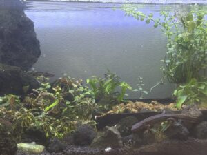 一方で、水位を低くして、水草と石、砂利を中心にしたイモリウムは誰でも簡単に作れます。