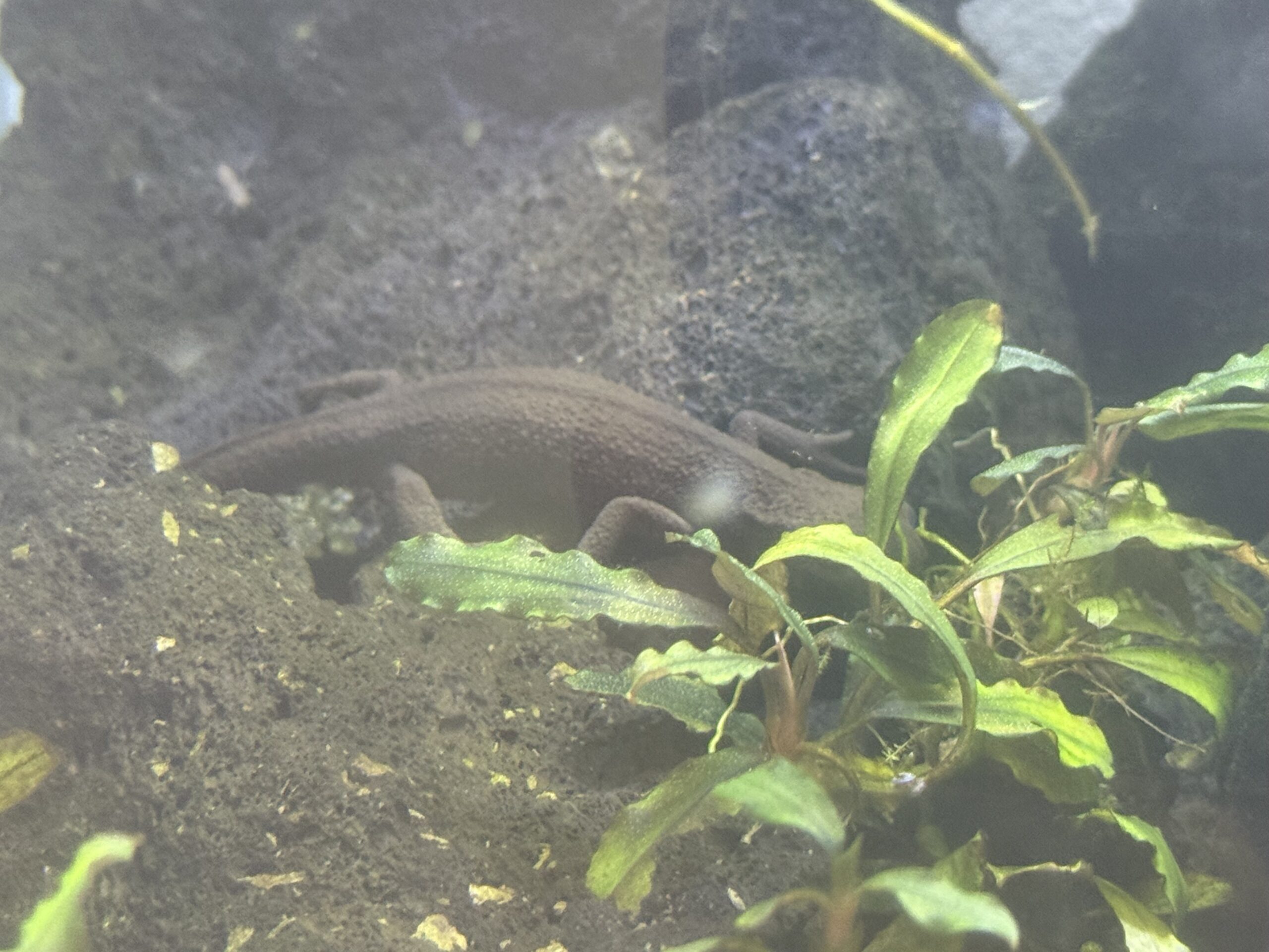 また、フィルターは外部式フィルターを使っているため、水槽内に邪魔な人工物がほとんどなくのびのびとイモリが泳ぎ回れます。